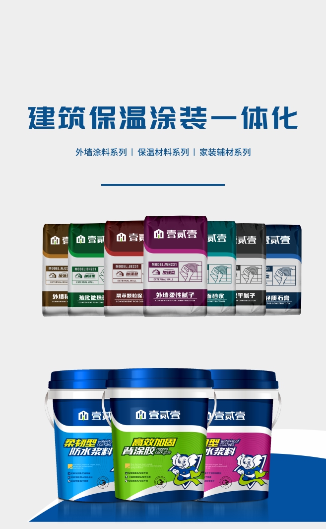 壹貳壹公司產品堅持以“低碳節能、綠色環保、安全、效果、便捷”為永恒的追求, 專注于建筑墻面裝飾美化及防護為發展方向,構筑三大核心競爭力,努力把壹貳壹品牌打造成為專業墻面保溫/美護工程涂料新標桿。